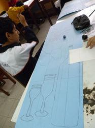 Pintura sobre vidrio, falso vitral, delineado y trabajado a mano con diseños personalizados e interpretados de bodegón.
