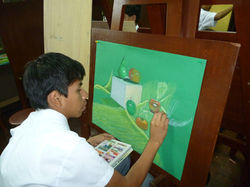 Pintura al aceite de linaza sobre lienzo de gran formato trabajado a mano alzada con diseños personalizados e interpretados, inspirados en artistas locales, nacionales e internacionales.